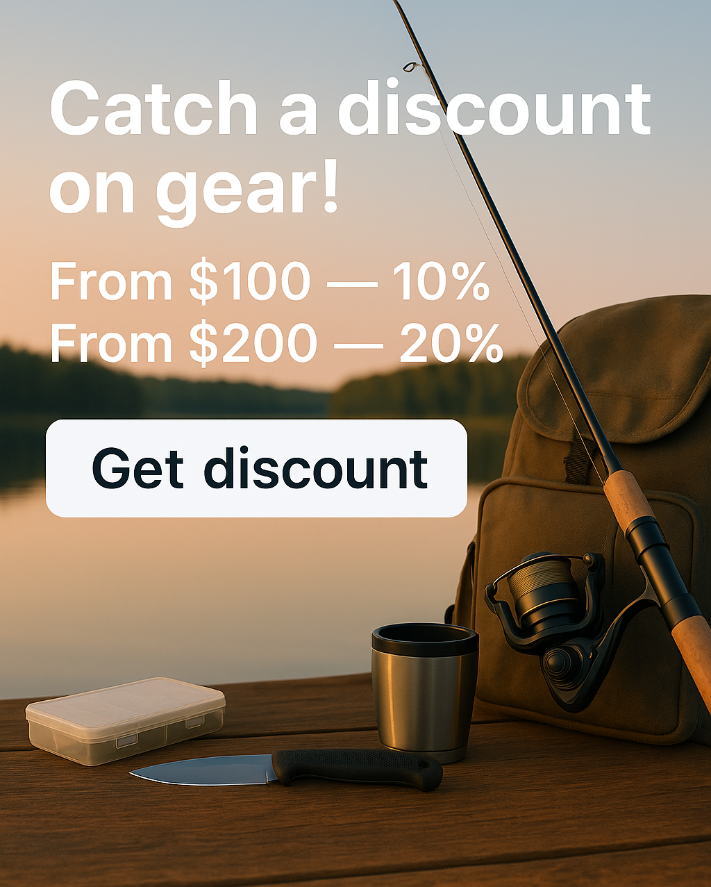 and if you buy everything you need for a big fishing trip — over $200 — you'll get 20% off!